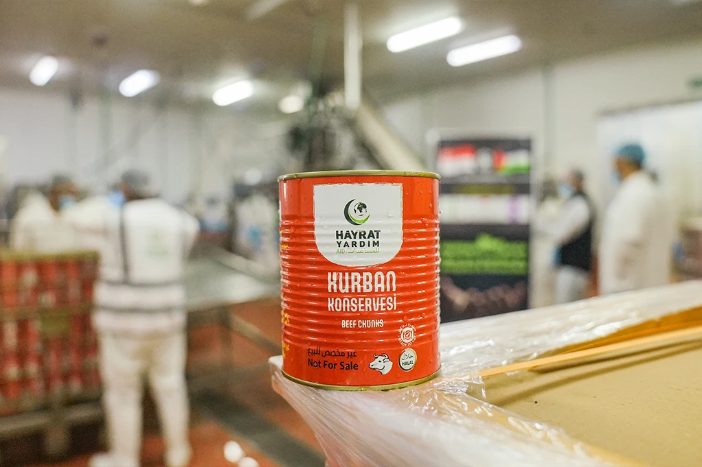 Geçtiğimiz aylarda Gazze Kurbanları kapsamında 7.500 büyükbaş hisse bağışı topladık. Kurban Bayramı’nda bağışçılarımızın emaneti, İslami usullere uygun şekilde kesildi. Şu anda ise kurban etleri konserve haline getirilme aşamasında. Toplamda 160.230 adet konserve büyük bir titizlikle hazırlanıyor.