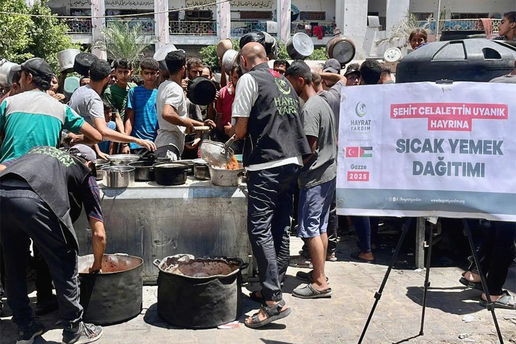 Bu bağlamda büyük bir soykırıma maruz kalan ve bir yandan da açlıkla mücadele eden Gazzeli kardeşlerimize 12 bin kişilik sıcak yemek dağıtımları gerçekleştirdik.